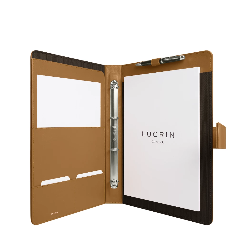 • At LUCRIN Geneva, we protect our handcrafted leather products with cotton bags that mirror their quality. An eco-friendly and reusable alternative that is not only protective but also highly versatile.