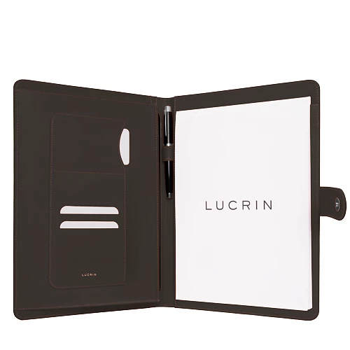 Delivered with an A4 notepad and without pen.