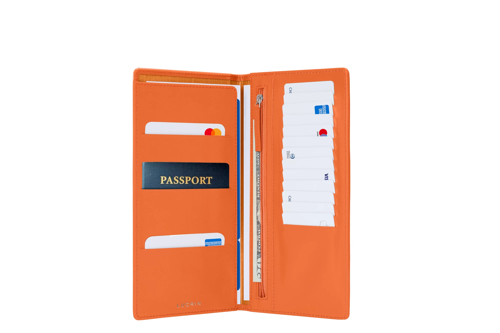 Discover the new trendy and ultra-practical travel accessory! Ideal for occasional and regular travellers, the Lucrin travel pouch allows you to carry all your travel essentials. The wallet can accommodate all your essentials, such as your credit cards (13 pockets), loyalty cards (3 pockets on the left), your passport and boarding pass as well as banknotes in the zipped pocket.