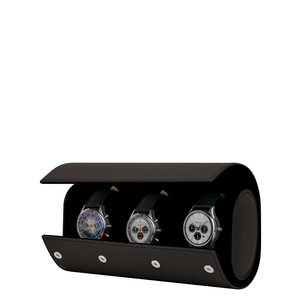Watch case for 3 watches Dark Brown  - Smooth Leather