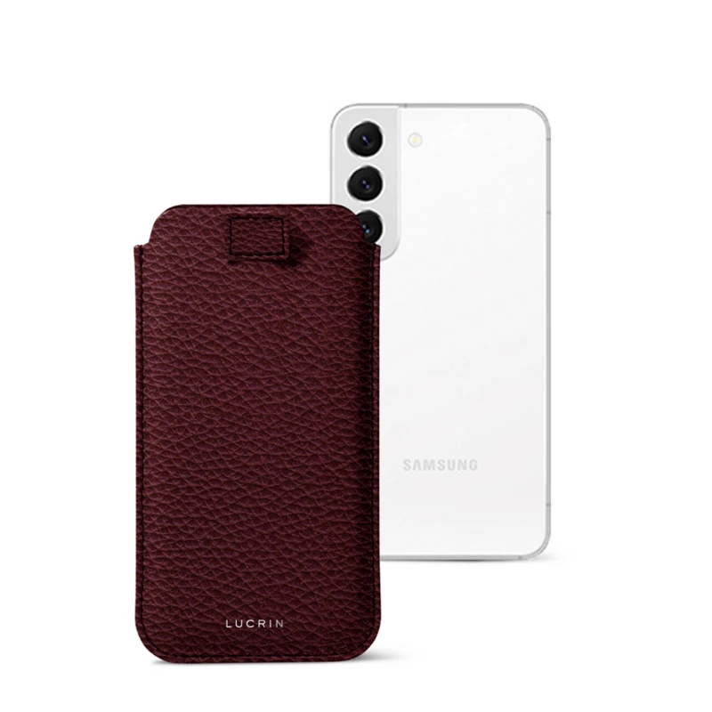 The Sleeve with Pull Tab for Samsung S22 by LUCRIN Geneva is crafted in leather and ideal for individuals who value functionality. This case is distinguished by a robust pull-tab and reunites all characteristics of the classic sleeve - protection, perfect fit and fashionable. The pull-tab is designed to fit your Samsung S22 snugly and provides unrestricted access to your phone at all times. Choose the leather, colour, and engravings to make your case unique to you!