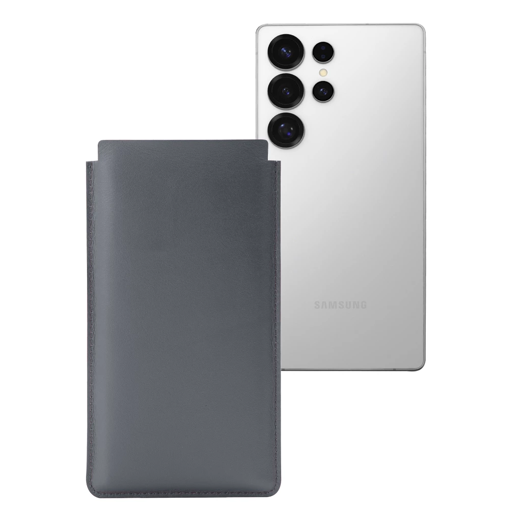 Enhance your Samsung Galaxy S25 Ultra with our classic S25 Ultra leather sleeve, meticulously crafted from premium leather. The sleeve's flexible design ensures a snug fit, while the soft microfiber lining protects your device from scratches and scuffs.