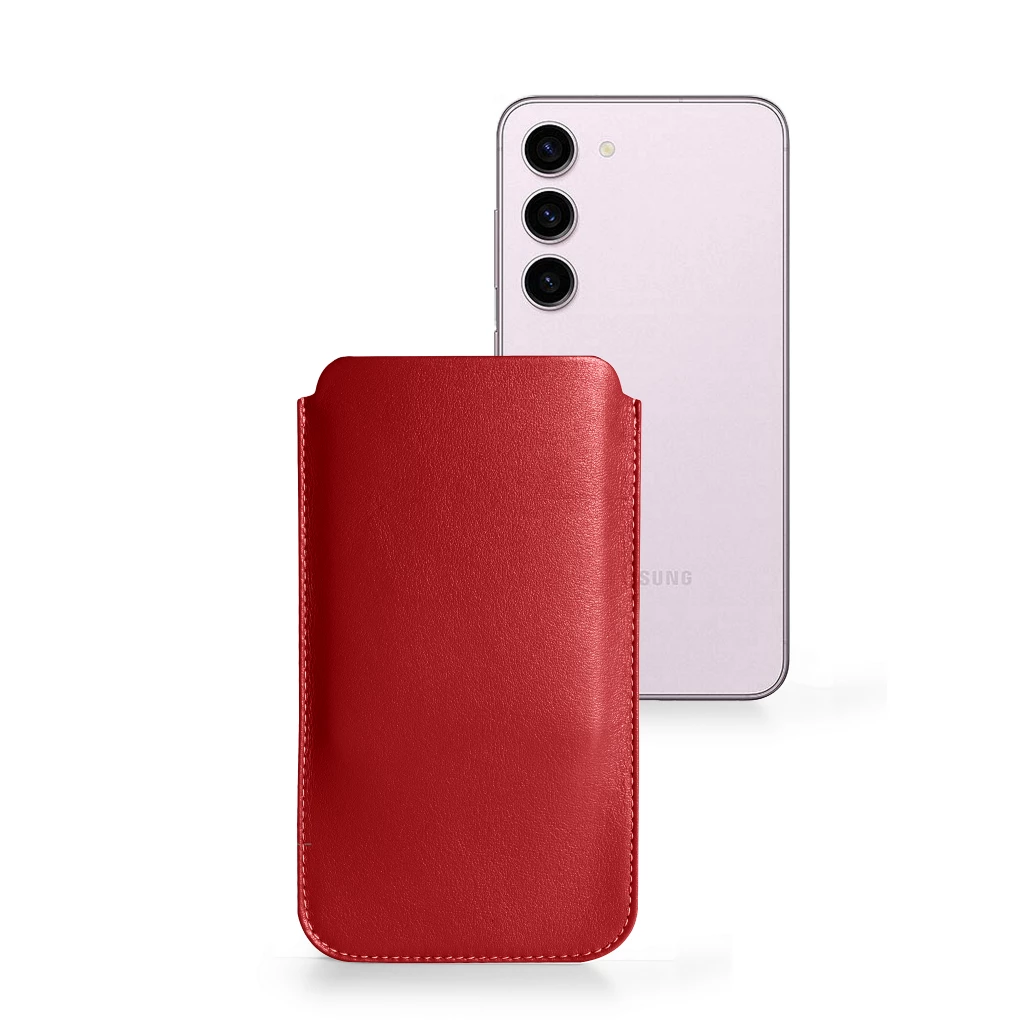 Designed for those who do not wish to use their new Samsung Galaxy S23 with a bulky case, this unique leather classic sleeve is the perfect solution to your dilemma. Handcrafted in genuine and premium leather, this case offers a snug fit to your new device and prevents it from accidental bumps and falls. The soft microfibre interior shields your device from scuffs and scratches. This unique sleeve takes the form of your Samsung Galaxy S23 overtime with use. Get a unique leather sleeve by choosing the leather colour and type from our palette. Add a beautiful engraving of your initials or name to stand out from the crowd.