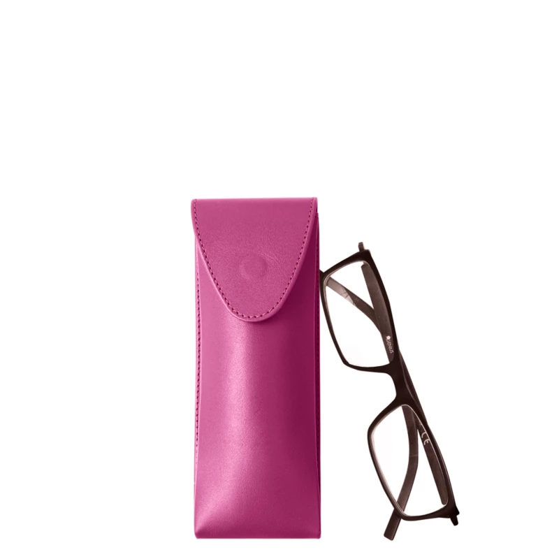 Here is the finest leather glasses case for your spectacles. Made with a top notch microfibre interior, the glass surface and frames of your eyewear will be perfectly protected against scratches and dust deposits. This leather case for glasses is semi-rigid and has a pretty functional flap with hidden magnets - this gives added security to your specs. Furthermore, this elegant eyeglass case is available in a grand choice of colours and leathers and can be customised with a contrasting thread colour or a unique engraving - a great gift idea for men and women alike.