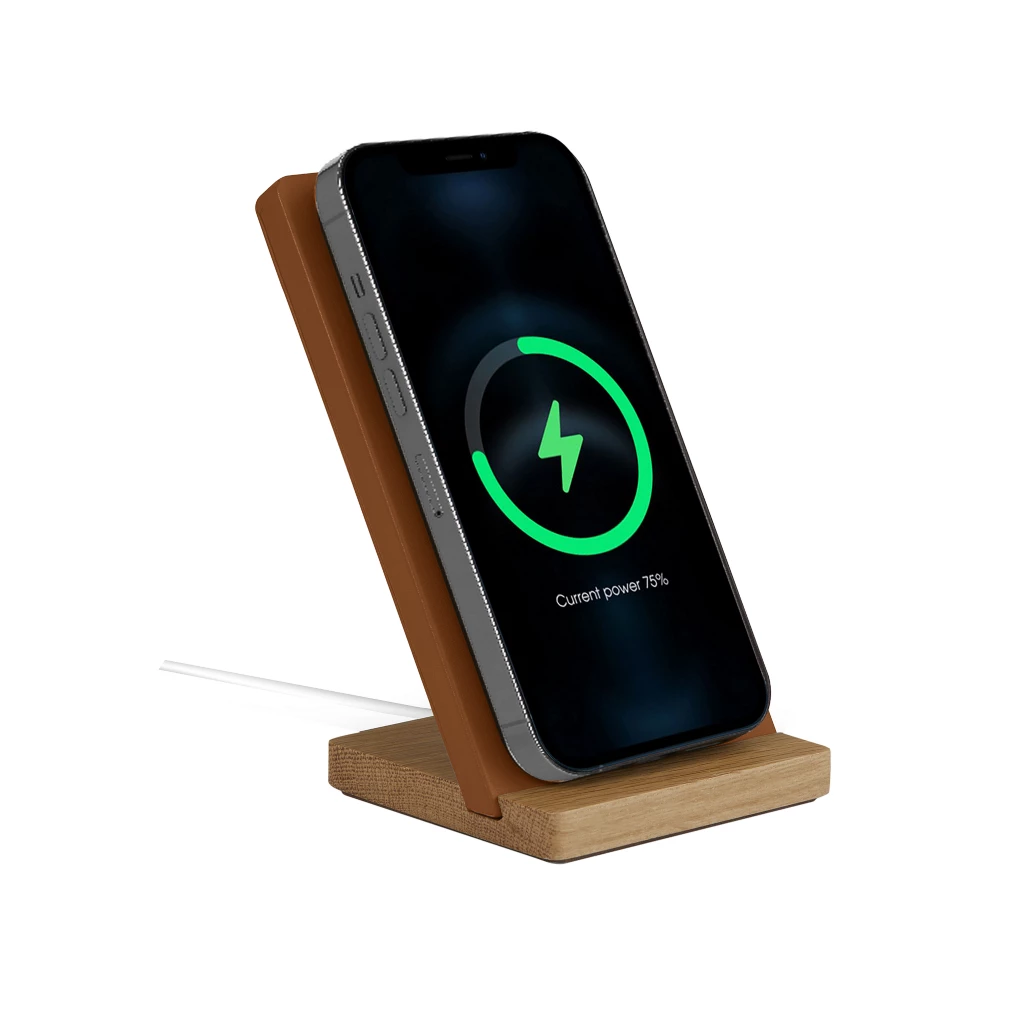 MagSafe iPhone Holder- Leather & Oak Wood Tan  - Smooth Leather