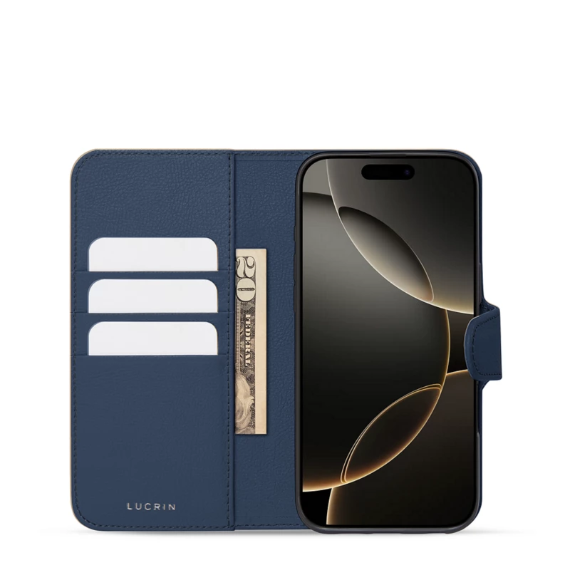 The luxury wallet case for the iPhone 16 Pro by LUCRIN Geneva epitomises elegance and versatility. Featuring three dedicated card slots and a compartment for bills and notes, it consolidates your everyday essentials into one stylish accessory. Crafted with a silicone bumper and raised edges around the screen and camera, along with a soft microfibre lining, it provides comprehensive 360-degree protection for your smartphone. Enjoy the convenience of MagSafe and QI wireless charging compatibility, allowing you to charge your phone effortlessly without removing the case. The magnetic folio design enables seamless phone calls even when closed. Personalise your case by selecting your preferred leather colour and type, and elevate it with a unique touch by engraving your initials for a bespoke finish.