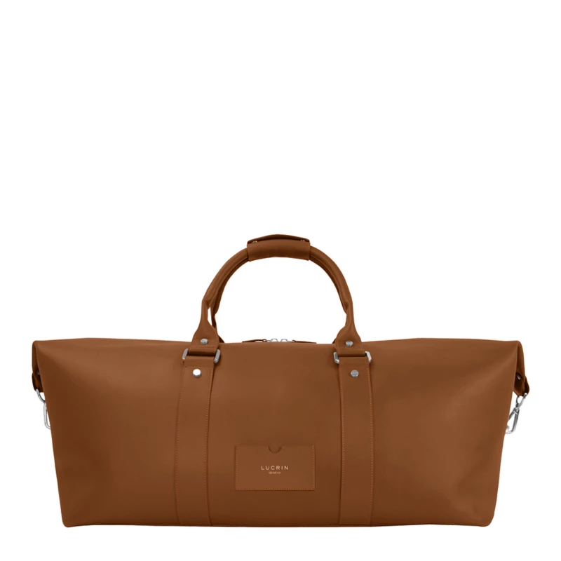 This large duffel bag with expandable sides, allows for extra packing space during your business trips or holidays. Besides its full-length zip opening, this elegant and subtle carryall has two interior side pockets with zip closure. You may of course personalise the travel bag to suit your taste and needs - thanks to the amazing choice of thread colour and/or engraving options. The carabiners on the ends of the main opening makes this knapsack extensible and discreet snap buttons allow you to attach the handles for an easy carry.