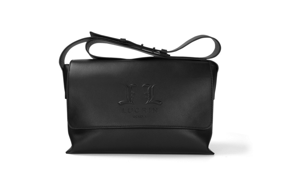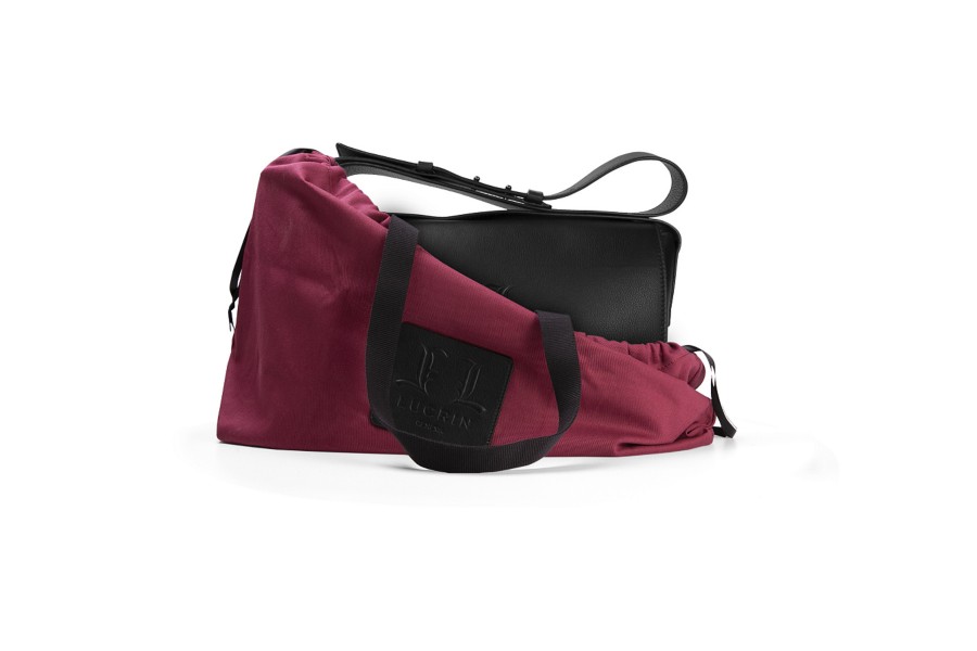Special Limited Edition for the 25th Anniversary of Lucrin in authentic Black Calf Leather and Red Garnet Cotton Lining. Original leather creation numbered 1 to 25, with an exclusive logo commemorating the 25 years of the brand.