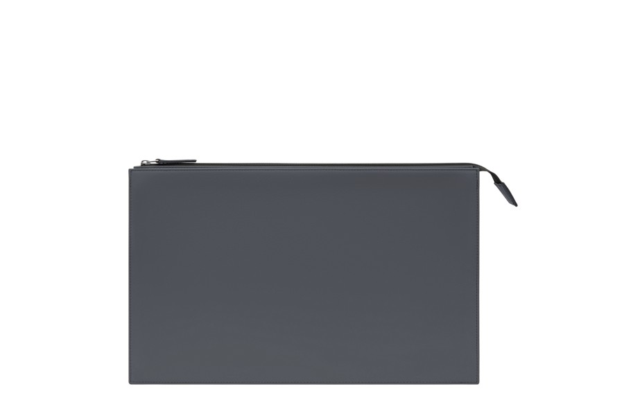 Document case - 3 compartments - Mouse-Grey - Smooth Leather