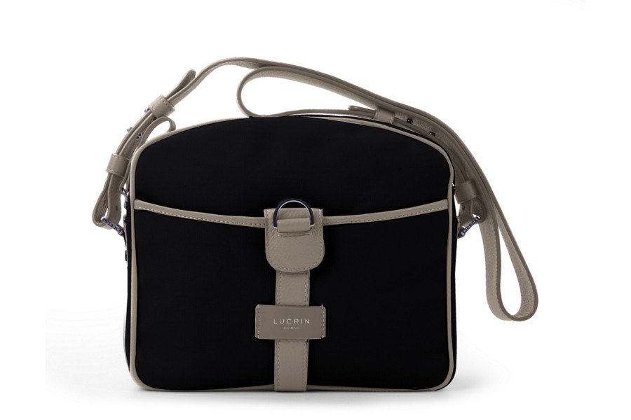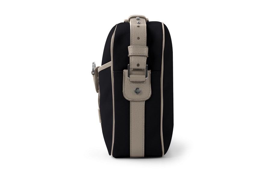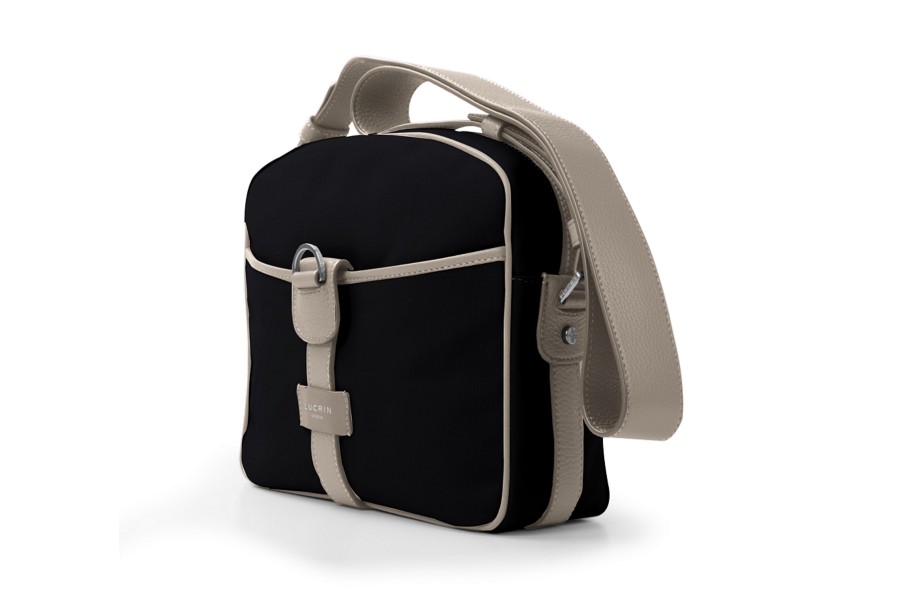 Small Messenger Bag - Black-Light Taupe - Canvas