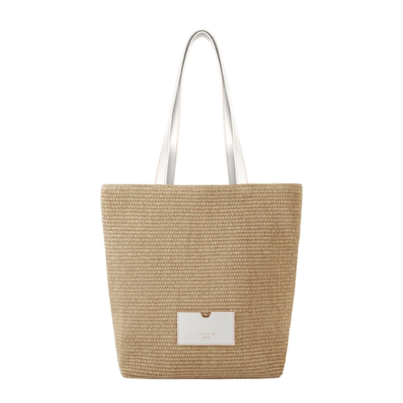 Crafted for the warmer season, this summer tote bag with gusset blends the natural charm of braided raffia with the subtle elegance of a leather finish. The gusseted base adds structure and extra space to the bag — ideal for carrying your summer must-haves, whether you're heading to the beach or into town. Lined with soft cotton, the interior offers space for your essentials — towel, book, or pouch — while a discreet leather pocket keeps your valuable accessories close at hand. Spacious, practical and effortlessly stylish, this raffia tote bag fits right into your summer routine. Personalise your gusseted tote bag now by selecting the leather details!