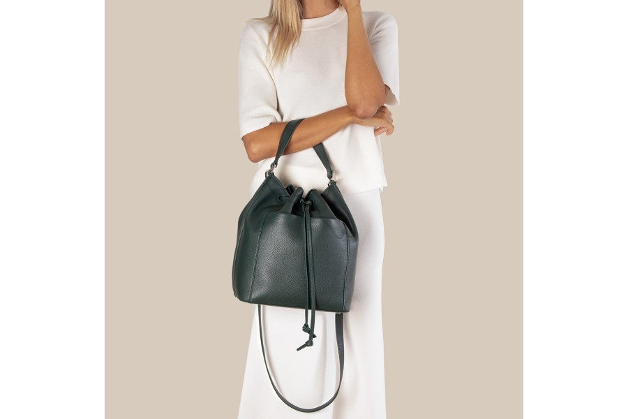 Lucrin has revisited the traditional leather bucket bag and presents a sublime fashion piece that exudes elegance and refinement. Thanks to its design and features that include an exterior pocket and hand sewn finish, it is an absolute pleasure to carry day in day out. Its interior pockets can contain your smartphone, wallet or makeup essentials. This leather ladies bag can be customised in our bright palette of colours and you may even go for the engraving of your name or initials.