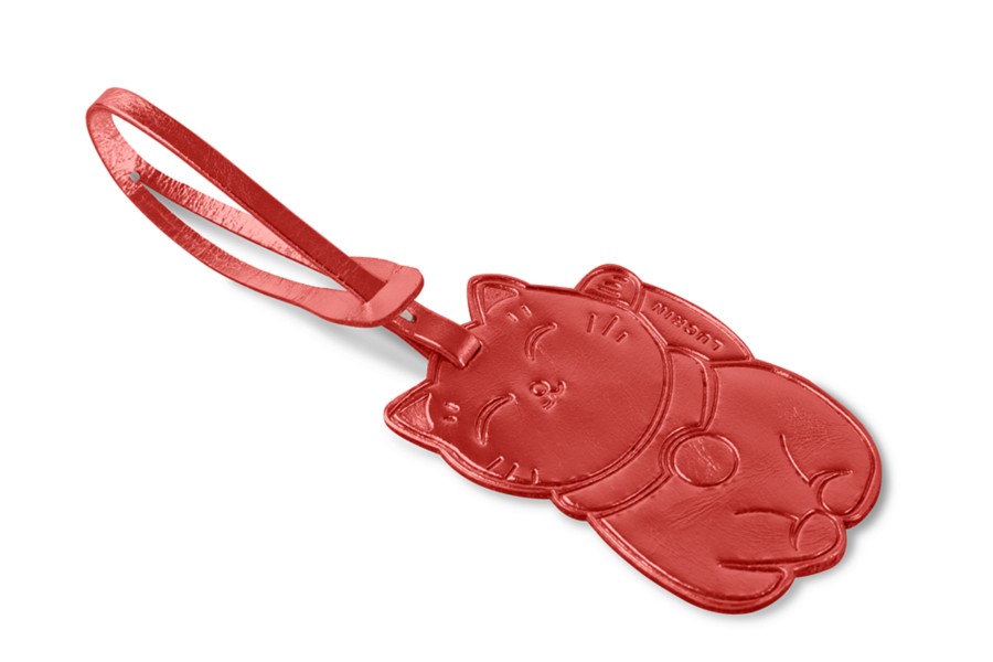 Maneki-neko Lucky Charm - Red - Metallic Leather