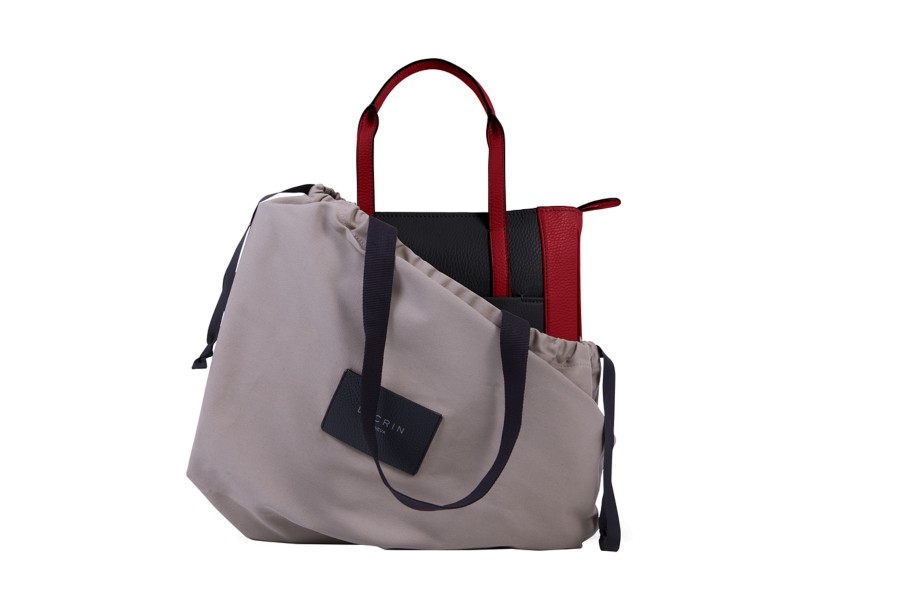 Small unisex tote bag - Black-Amaranto - Granulated Leather