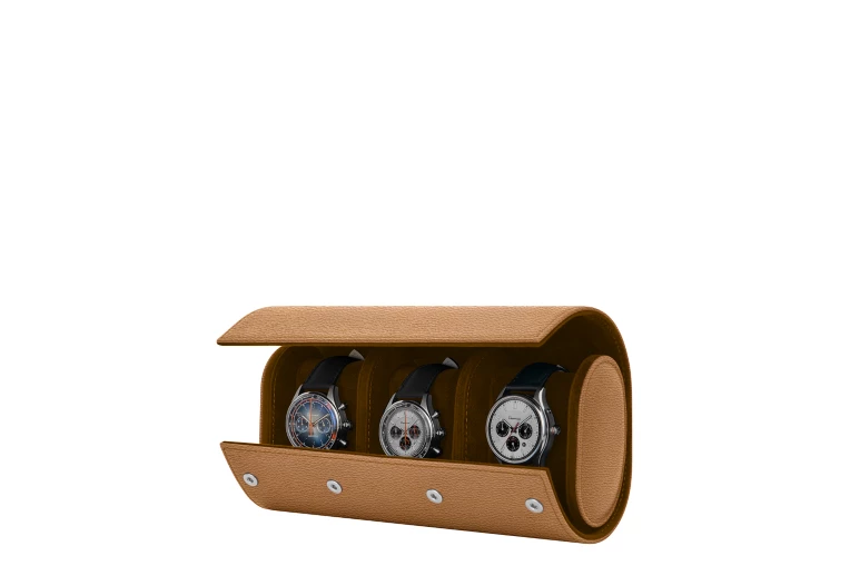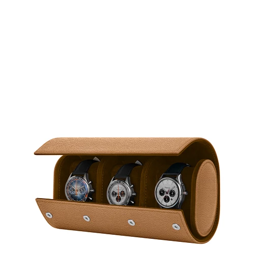 This is surely the most elegant leather watch case available right now. Designed in premium leather, it protects and carries your favourite watches, specially when you are travelling. Created with a rigid feel, this leather watch holder comes with a high-end microfibre lining that makes sure that your watches remain as new. There are 3 cushions inside for 3 watches, and they can be removed from the watch roll for easy storage. Wrap your watch around the cushions and place them all in the watch case again with the help of 4 snap buttons on the sides. Choose among sumptuous leathers, colours and customising options for an absolutely unique watch case for men. This watch organiser is arguably the best choice for watch lovers or collectors
