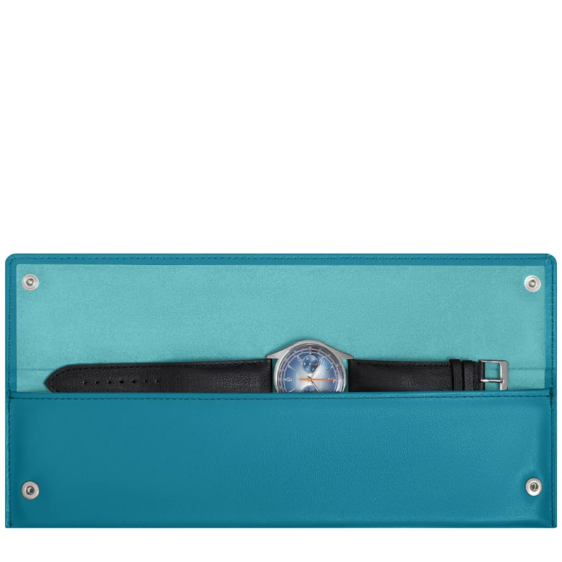 This semi-rigid, rectangular leather watch pouch is ideal for travellers especially, and can also be the perfect gift for watch lovers. The flap closure with 2 snap buttons makes it easy to insert and remove your watch from the case, while keeping it totally secure when shut. If you wish to gift a watch to someone special, this leather watch pouch will make the perfect “gift wrap”. The watch travel pouch can be personalised with a beautiful engraving for example.