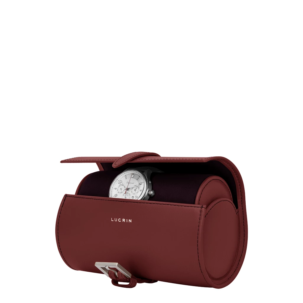All luxury watch lovers like switching between their precious watches to match their outfit or merely on a whim. This gorgeous leather watch roll has been designed to let you have your coveted time devices within hand-reach during your travels. Safely store up to 3 watches by strapping them around the round cushion found inside. For additional protection, the case's interior has been expertly lined in microfibre; the whole is securely held together by a silvery buckle.