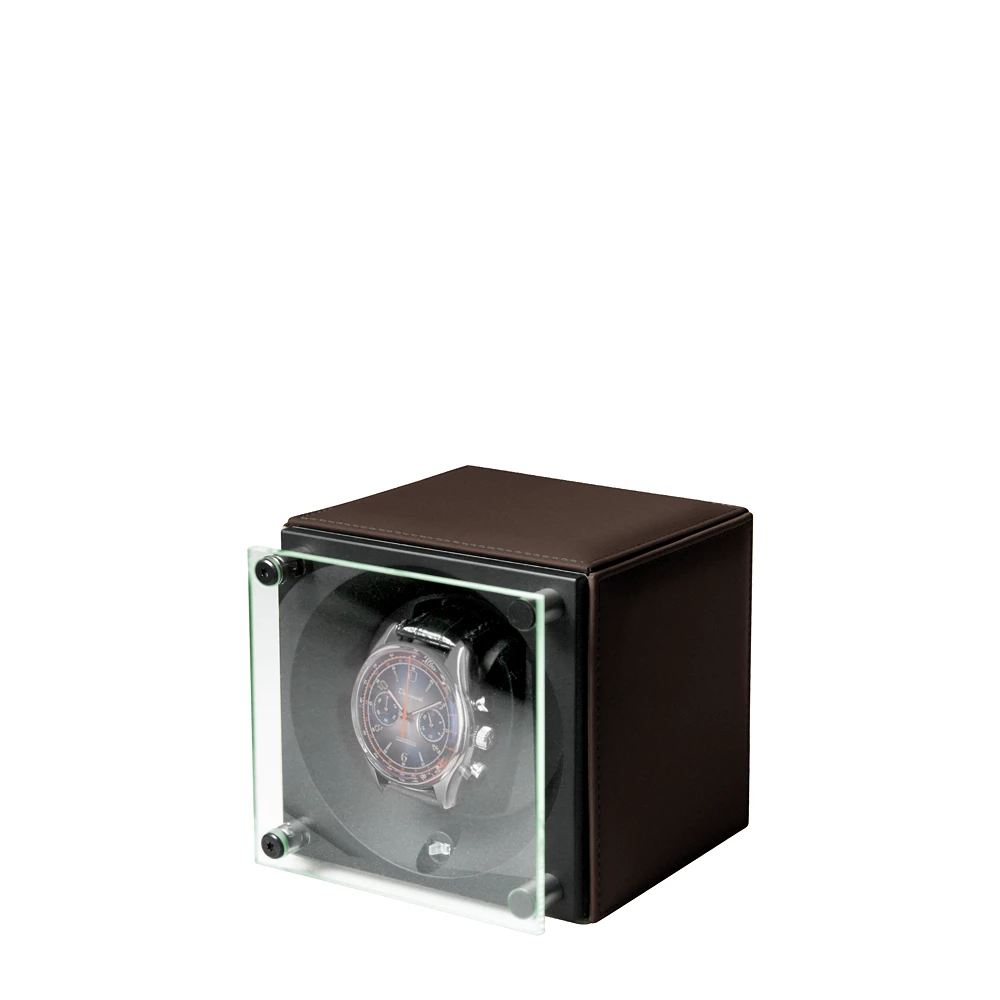 Single watch winder SwissKubik - by LUCRIN - Dark Brown - Calf Leather Dark Brown  - Smooth Calf Leather