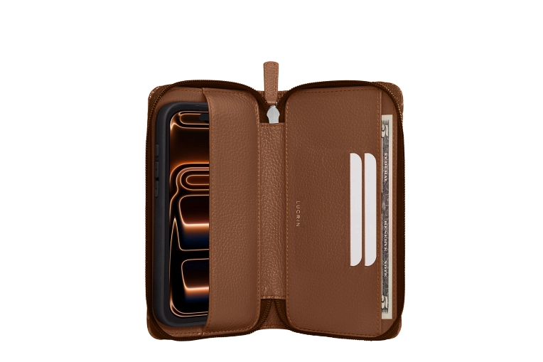 Designed for those who like to keep everything in one place, this iPhone 17 Pro Max zipped wallet blends practicality with crafted elegance. Its secure zip-around design opens to reveal a softly lined phone compartment, card slots, and room for what truly matters — all wrapped in smooth full-grain leather. Two card slots and two compartments keep your essentials neatly organised — from folded notes to your iPhone 17 Pro Max. Slip your phone without a case into one of the compartments, or use the main one if it’s fitted with a slim cover. Every zip, every stitch, every detail is made to move with you — whether you’re heading out for a meeting or winding down for the evening. Choose your leather, pick your colour, and add your initials. Whether you prefer a minimalist look or a more distinctive touch, this leather zipped wallet for iPhone integrates seamlessly into your daily routine. Personalise your iPhone 17 Pro Max zipped wallet — and make it a quiet signature of your day-to-day.