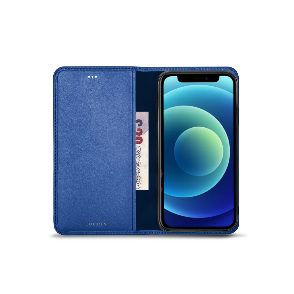 Our custom wallet case for iPhone 12 mini combines the minimalist elegance of phone covers and the practicality of wallets. Thin enough to keep in your pocket, this case absorbs shocks and will protect your phone from bumps and impacts. A lateral pocket inside the front panel lets you safely tuck money notes and credit cards. Your screen rests against the interior microfibre lining which protects it against scratches and dust. The elegant stitching around the outer edges is customisable in colours of your choice. Choose the leather and colour you prefer and engrave your name to create a custom wallet case just for you!