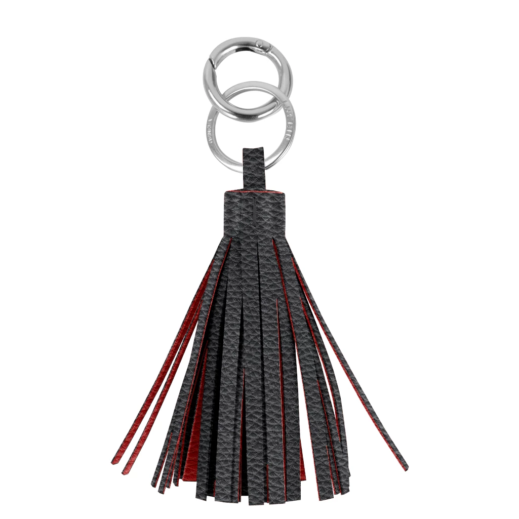 Used as a leather keychain or a bag tassel, this trimmings fashion accessory is one of the favourite cute keychains for women. The leather fringes are doubled up with another layer of authentic leather. This tassel keychain boasts of exceptional handmade finishing and comes with two nickelled accessories: flat ring for your keys and a carabiner ring for easy fixing to your bag handles.