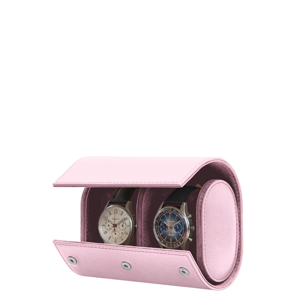 Watch case for 2 watches Pink  - Pebbled Leather