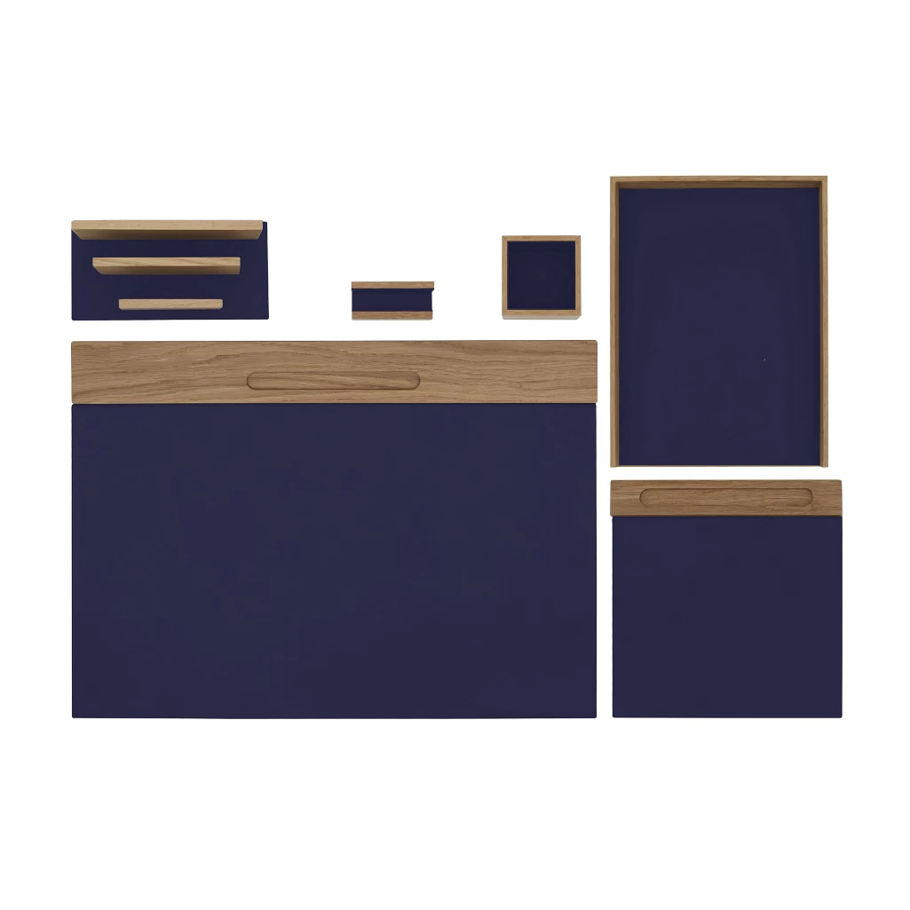 Are you looking for desk accessories that will enhance your office? Look no further. LUCRIN Geneva has crafted this unique desk set, to complement your office space. Handcrafted in oak wood and with leather inlays, this unique desk set from our wood leather collection will help you stay more organised. This unique desk set makes a great gift idea for your colleague, closed one or even yourself!