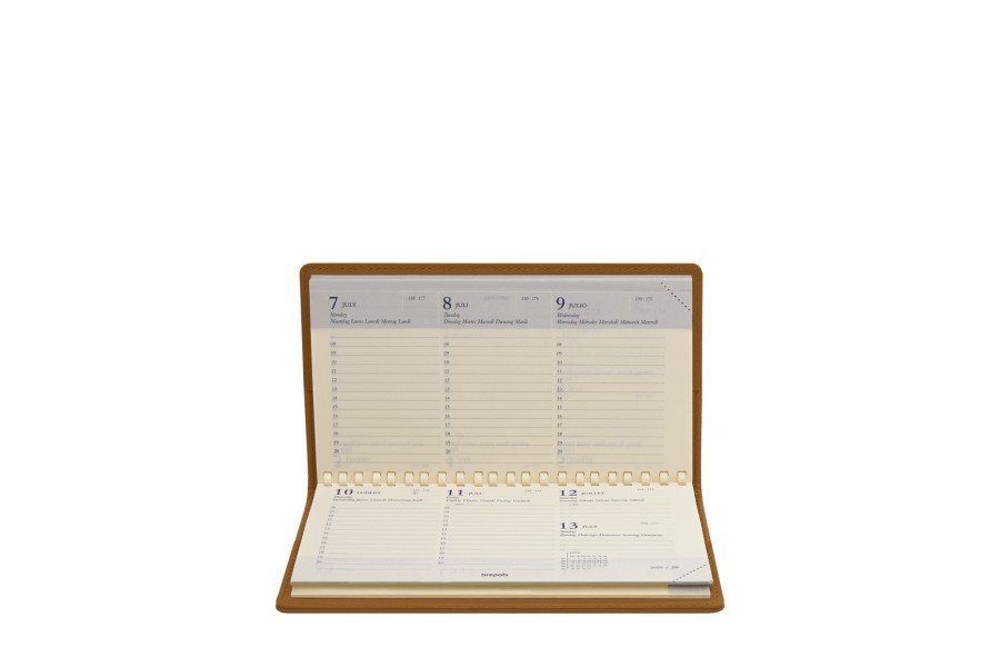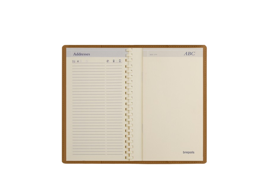 Pocket 2019 diary/organizer in full grain leather. Delivered with an Omniplan Brepols spiral-bound, week-on-two pages planning diary for the year, a phone index, a planning and world maps. Diaries start from January 1st, to December 31st