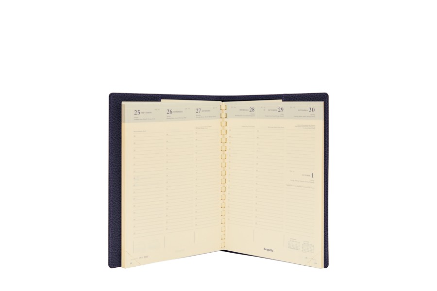 Leather simple refillable desk diary 2019. Supplied with a Brepols Timing spiral-bound, week-on-two pages weekly planner.