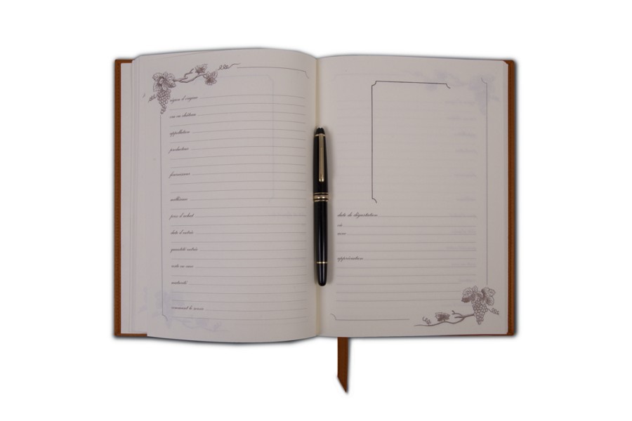 Cellar book for 77 vintage years, available in French only. This book enables you to organise your cellar efficiently, noting down all the information necessary for its good management. To the right, there are sections for the region of origin, grape variety or château, appellation, producer, supplier, year, purchase price, date of entry, quantity of entry, remainder in cellar, maturity and notes on serving. On the left, there is a space for sticking the bottle label, the date of tasting, where and with what this was done, and comments on the wine. The book has a leather strip that serves as a bookmark.