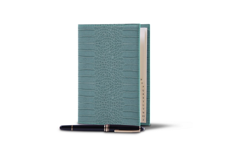 Office telephone directory with flexible cover - Turquoise - Crocodile style calfskin