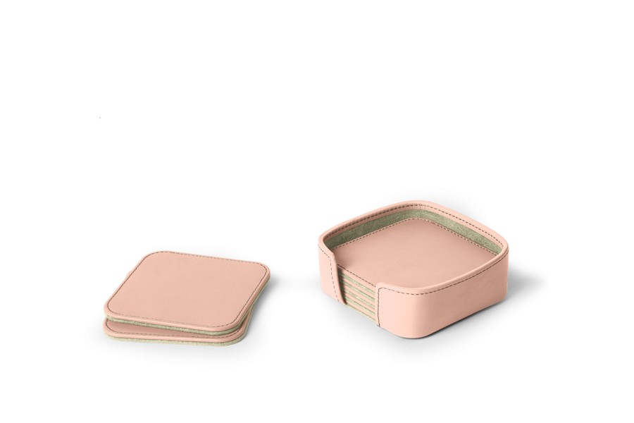 Set of 6 square coasters - Nude - Smooth Leather