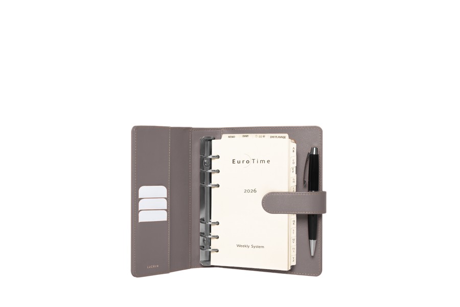 Medium 2019 agenda binder made of full grain leather with 6 nickeled rings. 3 interior pockets for credit cards. Delivered with 2019 calendar/agenda filler in 6 languages, 1 week on 2 pages / telephone index / memo.