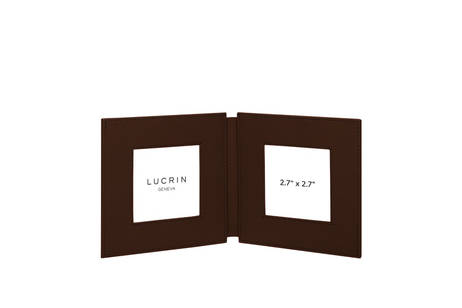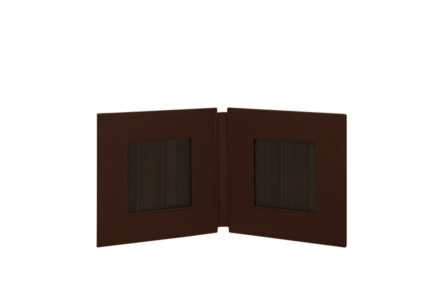 Double Picture Small Frame - Dark Brown - Granulated Leather