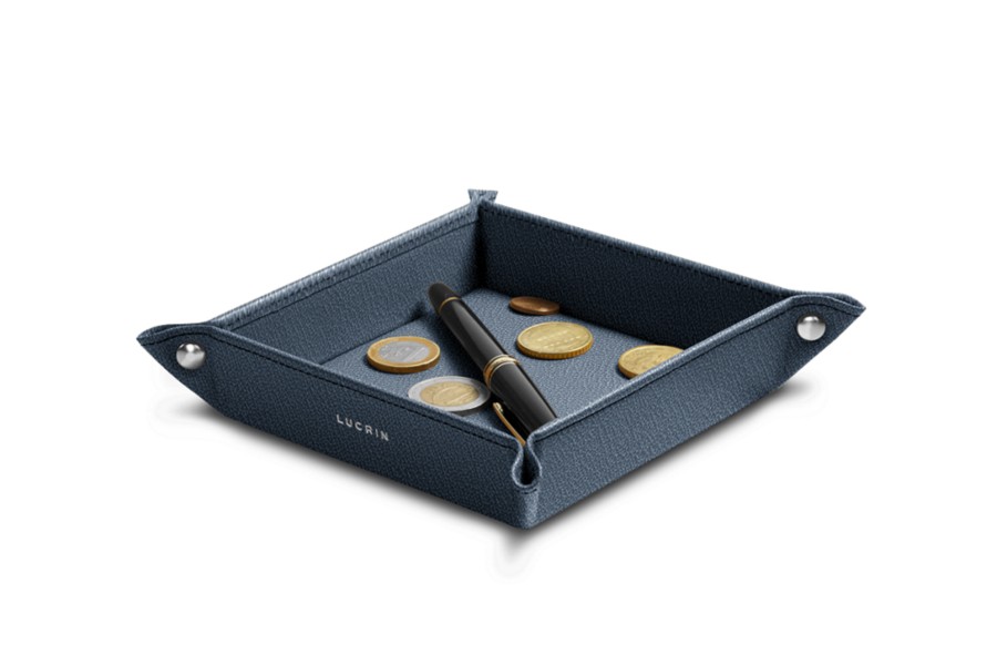 This is the small solid catchall from the Lucrin collection. Made entirely of natural leather, its flawless finishing touches make this a decorative object that is refined, yet highly practical. This square catchall can be placed anywhere in the home or office to organize and keep track of the items you keep in your pockets. The corners are held together with 4 metallic rivets.