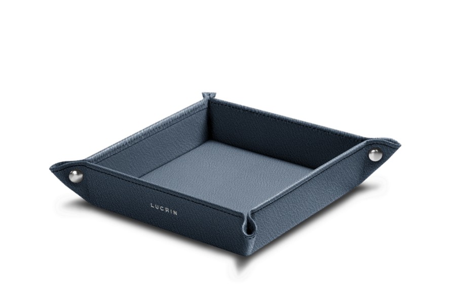 Small square catchall (12 x 12 x 3 cm) - Navy Blue - Goat Leather