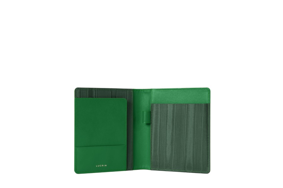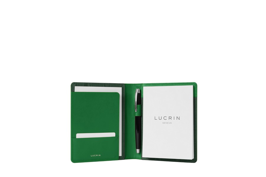 This office accessory is highly popular with professionals: the multipurpose A6 portfolio. Equipped with a curved flat pocket on the left - with a slot for business cards - and an A6 notepad on the right, this top quality leather portfolio also features a loop to hold your favorite pen. This A6 portfolio keeps everything you need for meetings and business trips always at hand. Please note that replacement A6 notepad refills are available for purchase on our website.