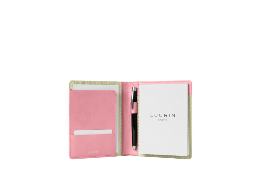 This office accessory is highly popular with professionals: the multipurpose A6 portfolio. Equipped with a curved flat pocket on the left - with a slot for business cards - and an A6 notepad on the right, this top quality leather portfolio also features a loop to hold your favorite pen. This A6 portfolio keeps everything you need for meetings and business trips always at hand. Please note that replacement A6 notepad refills are available for purchase on our website.