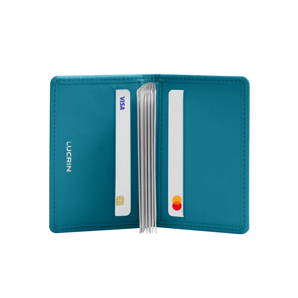 Here is the slim credit cards holder by Lucrin. This cards case in authentic leather is delivered with a removable plastic pocket that can accommodate 6 x 2 additional cards. The leather cards case itself consists of 2 pockets for debit/credit cards and 2 really practical flat multi-function pockets.