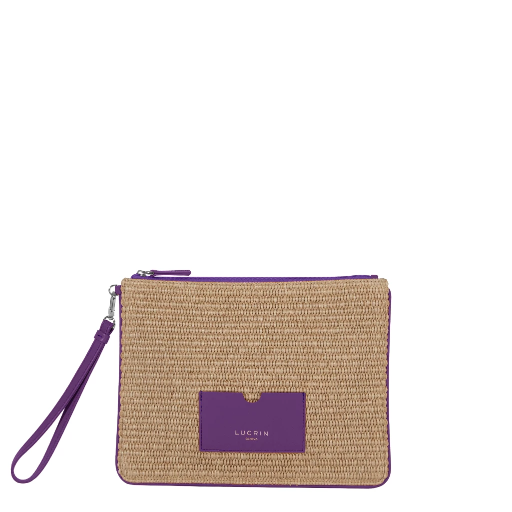 Raffia Summer Pouch - Large Size Lavender  - Smooth Leather