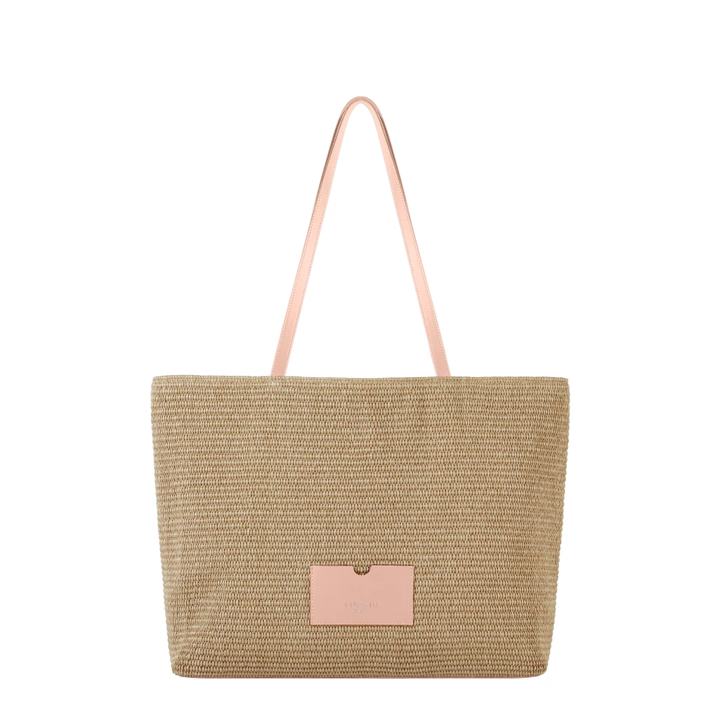 Summer Raffia Shopper Bag Nude  - Smooth Leather