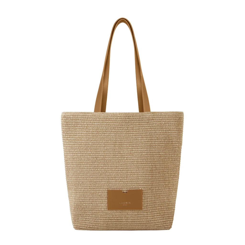 Crafted for the warmer season, this summer tote bag with gusset blends the natural charm of braided raffia with the subtle elegance of a leather finish. The gusseted base adds structure and extra space to the bag — ideal for carrying your summer must-haves, whether you're heading to the beach or into town. Lined with soft cotton, the interior offers space for your essentials — towel, book, or pouch — while a discreet leather pocket keeps your valuable accessories close at hand. Spacious, practical and effortlessly stylish, this raffia tote bag fits right into your summer routine. Personalise your gusseted tote bag now by selecting the leather details!