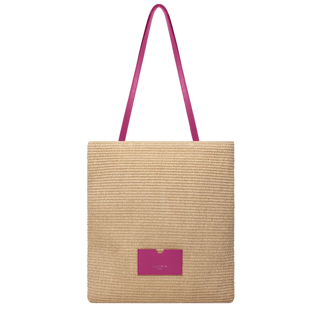 Raffia Summer Tote Bag Fuchsia  - Smooth Leather