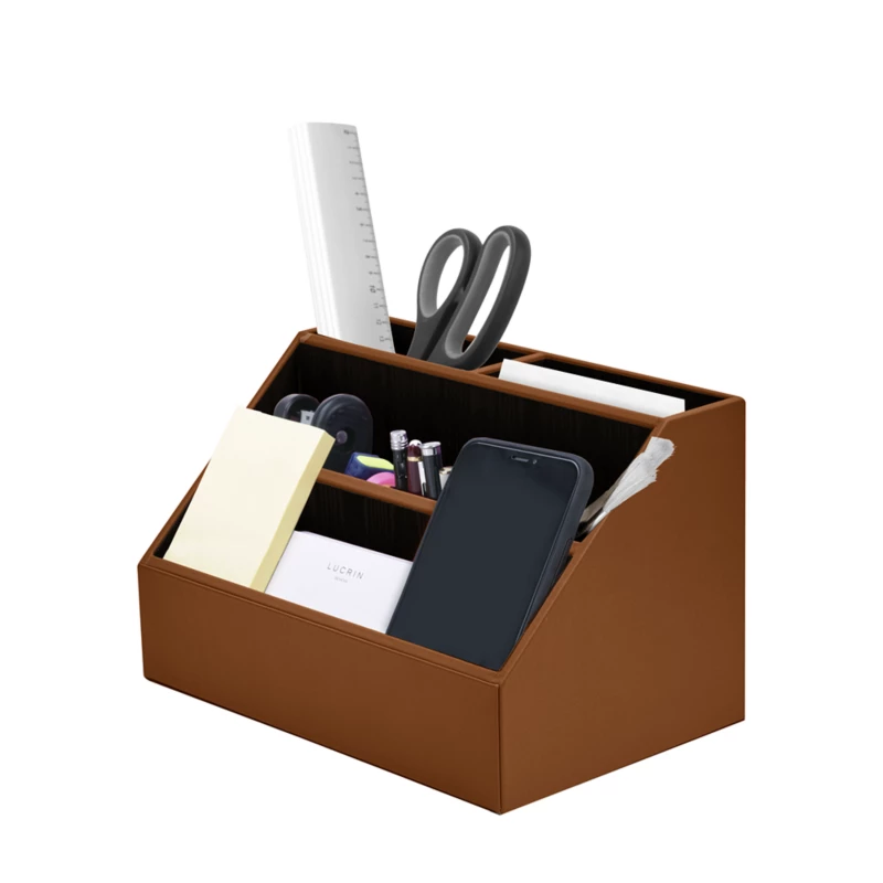For a neat workspace, Lucrin presents this superb desk tidy made in leather. It is basically a wood desk organiser covered expertly with the finest full-grain leather, for perfect stability on your office table. Used as a desk decor by many due to its elegant look, its primary function however is to provide storage space (5 compartments) for your desk accessories such as stapler, ruler, post-its, pencils, envelopes, highlighters and so on. For a perfect office organisation, this leather desk organizer is a must-have. You may even customize it with your initials or your name.