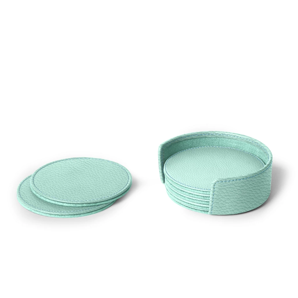 Welcome your guests with a touch of class and style by setting out your dining or coffee table with those leather coasters. Your table will be duly protected from the usual 'rings' that come up when you place your glasses on the surface. The Lucrin coasters have authentic premium leather on its outer surface and microfiber underneath. Once that your guests gone, you can keep the glass mats in the rack, which is also made of the same high-end leather. This set of 6 leather coasters can also find its place in conference rooms during long board meetings where drinks are served.