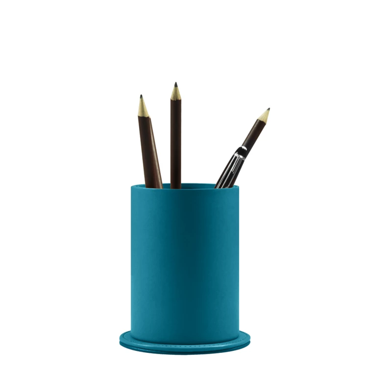 Here is the round pens holder of Lucrin, proposed in premium authentic leather, and ideal at the office or at home to keep your pencils and pens. Its base is slightly larger relative to the storage tube area, which therefore provides better stability. This leather pens container can welcome around a dozen of pencils or pens. You also have the opportunity to match it to other Lucrin office accessories, such as Desk Pad, Paper Tray, Mouse Pad, and so on.), and you can then have an elegant and classy leather desk set that will blend with the decor of your workspace.